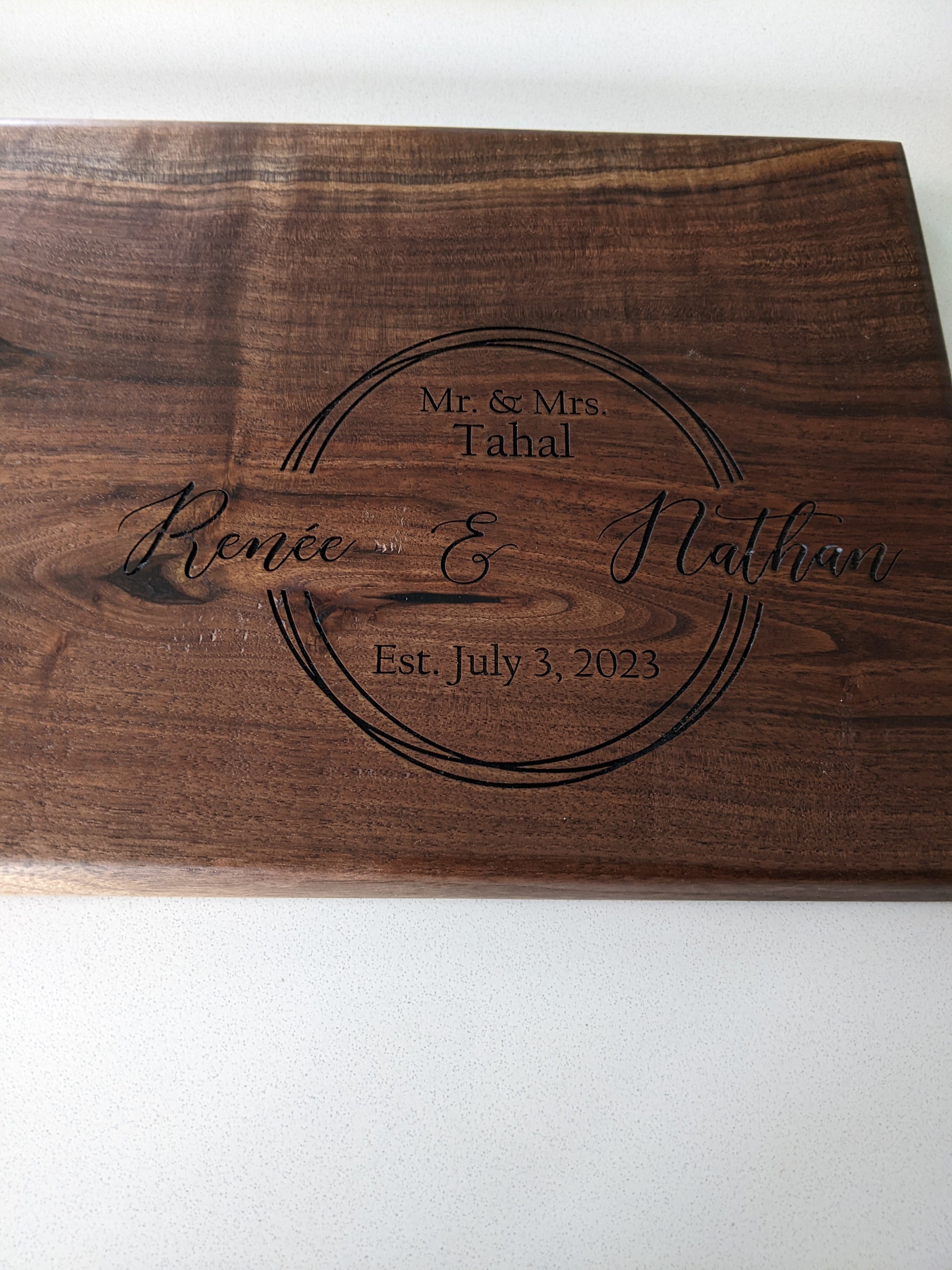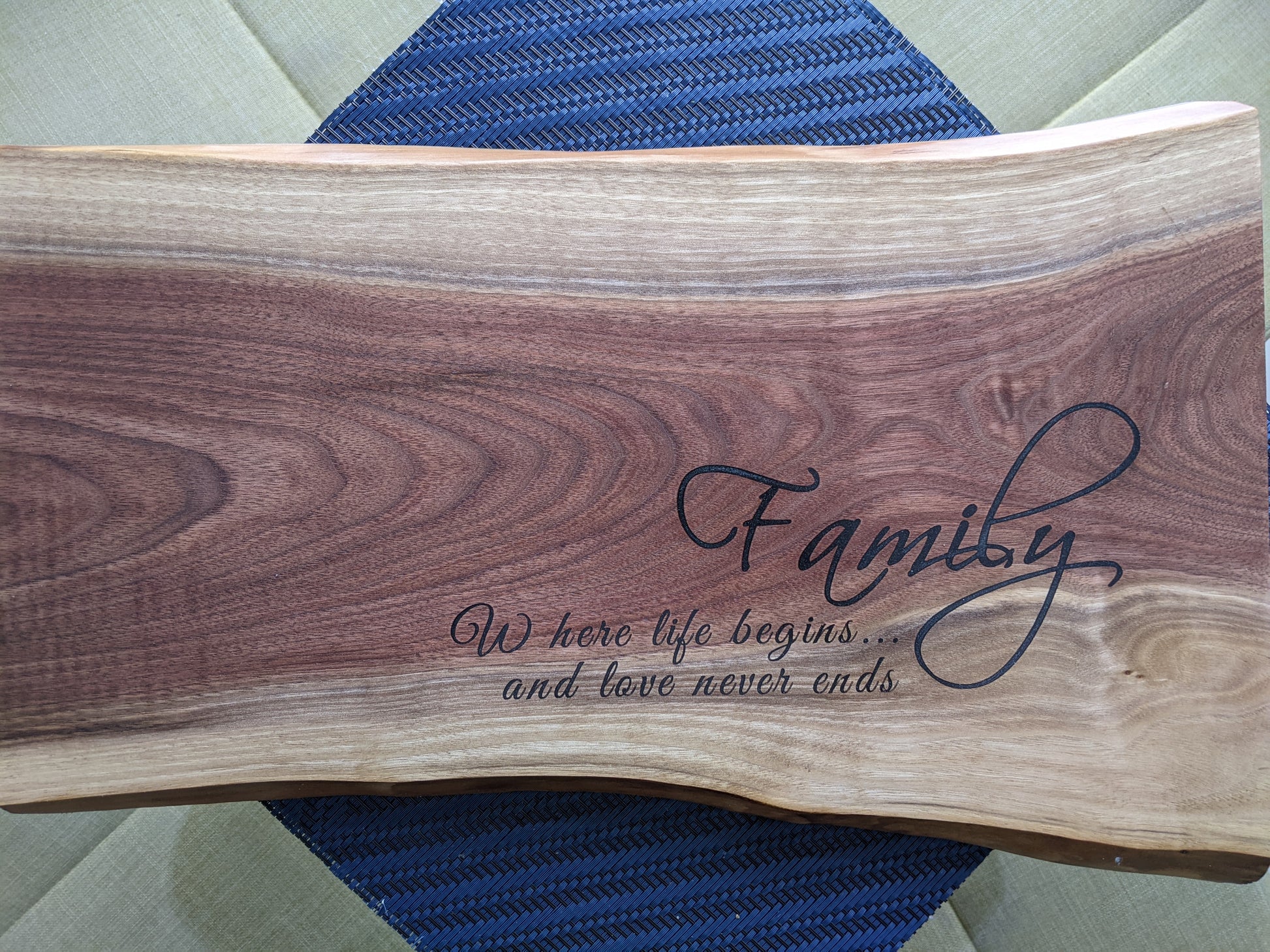 Choose a live edge for an organic, rustic feel or a clean straight edge for a modern, minimalist look. Keep it plain for timeless versatility, or personalize it with laser engraving or food-safe epoxy fill—perfect for names, logos, or meaningful designs.